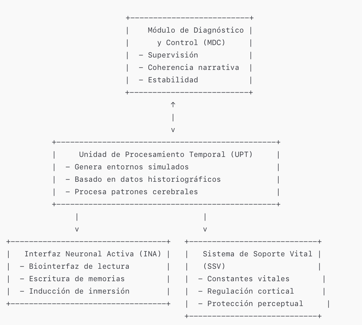 Temporal Processing Unit (TPU): responsible for generating simulated environments from historiographical data and the subject's brain patterns.